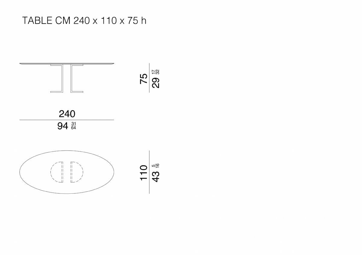 Round: Q: 150 cm h:75 cm / Q: 110 cm h:75 cm